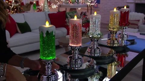 Spreminjanje barv Ko se voda, v kateri so bleščice, premika, jo LED luč s spreminjanjem barv osvetli in ustvari bleščeč prazničen učinek. Barve se počasi menjavajo med zeleno, vijolično, rdečo in modro. Medtem pa umetni plamen gori v oranžni barvi.