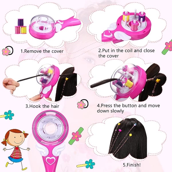 - Paket vsebuje: 1x pripomoček za pletenje kitk, 12x sponke za lase, 3x nit (rumena, roza in vijolična nit), 2x dodatek za lažjo uporabo.