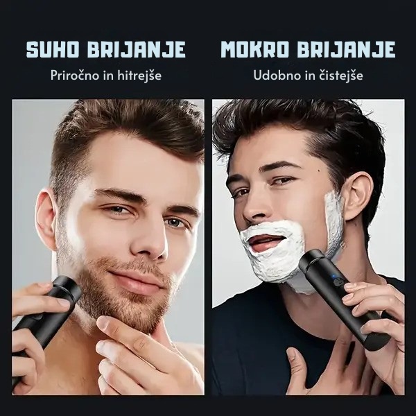 Njegova vodoodporna zasnova omogoča enostavno čiščenje in vsestranske možnosti britja, ne glede na to, ali imate raje mokro ali suho britje.