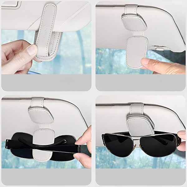 To držalo za sončna očala je zasnovano tako, da ustreza skoraj vsem modelom avtomobilov, in se enostavno pripne na vizir, zato je namestitev hitra in brez težav.