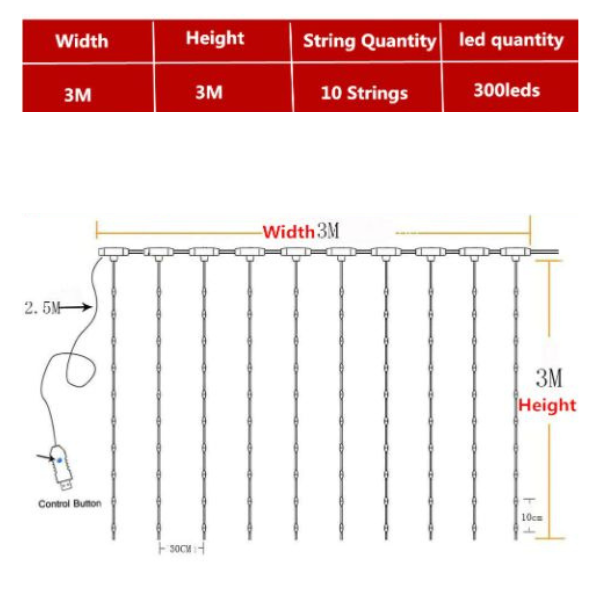 Število lučk: 300 LED lučk