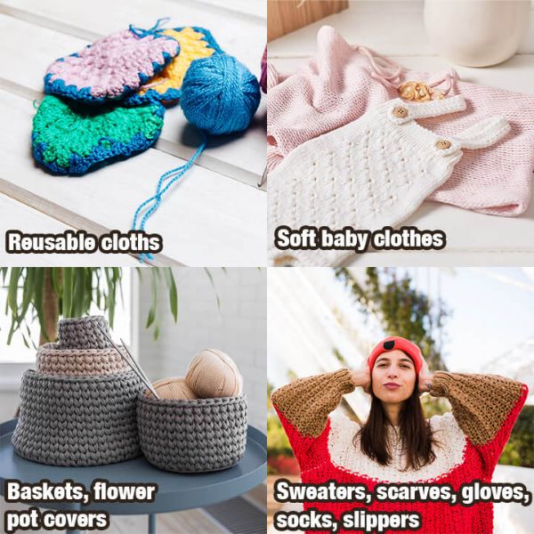 Kvačkalni deli so izdelani iz lahkega aluminija, zato se med uporabo ne upogibajo. Praktična in trpežna zasnova kavljev zagotavlja, da vaše roke med pletenjem ne bodo obremenjene.
