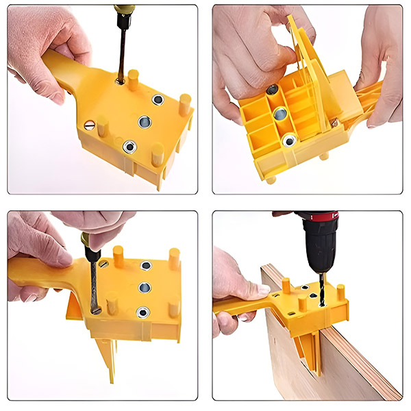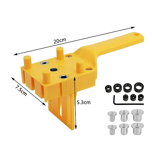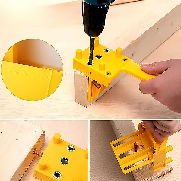 Naprava, zasnovana za hitrost in natančnost, je opremljena z nastavljivimi omejevalniki in centimetrsko/milimetrsko lestvico, ki omogočajo natančne nastavitve globine. Ne glede na to, ali vrtate za vogalne povezave, T- ali L-sklope, vam to orodje prihrani čas in težave.